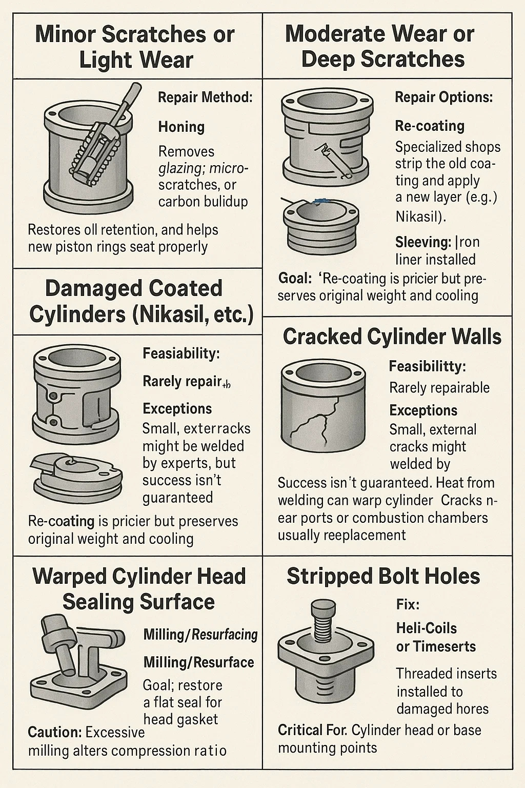 Absoluut, motorfiets cilinders kan vaak worden gerepareerd, afhankelijk van het type en de ernst van de schade. Hier is een praktisch overzicht: