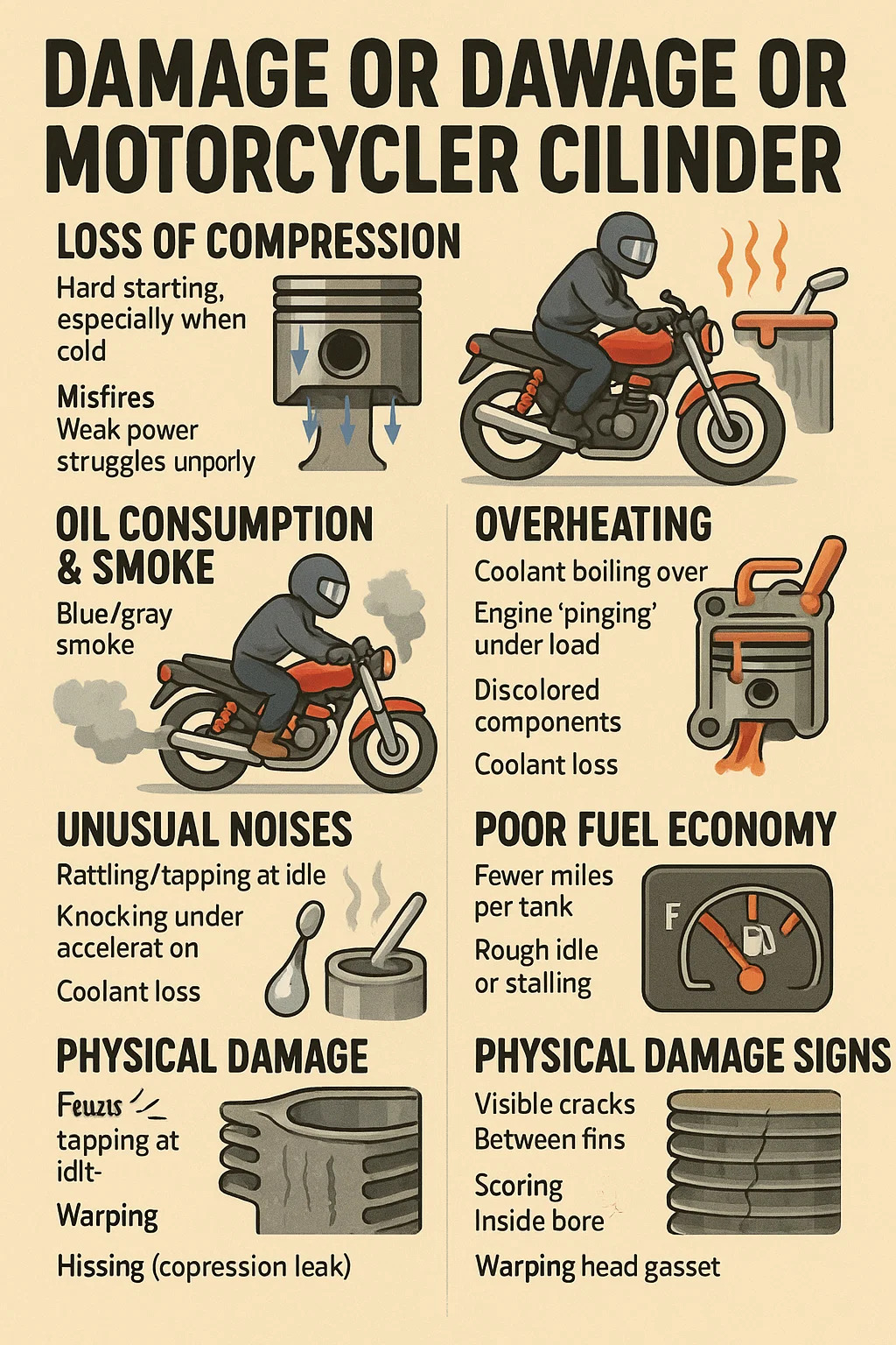 Dit is wat er gebeurt als a motorfiets cilinder beschadigd of versleten is, praktisch uitgelegd:
